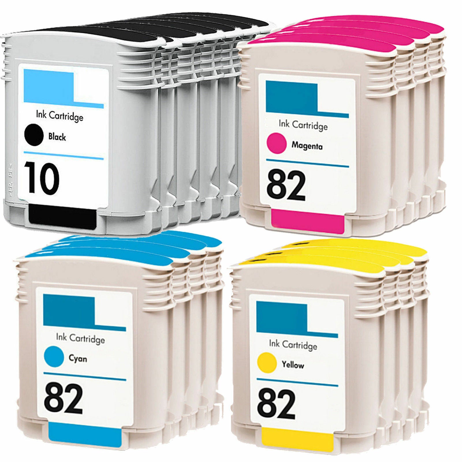 18 Pack Compatible Refillable HP 10 Black & 82 CMY Ink Cartridges.